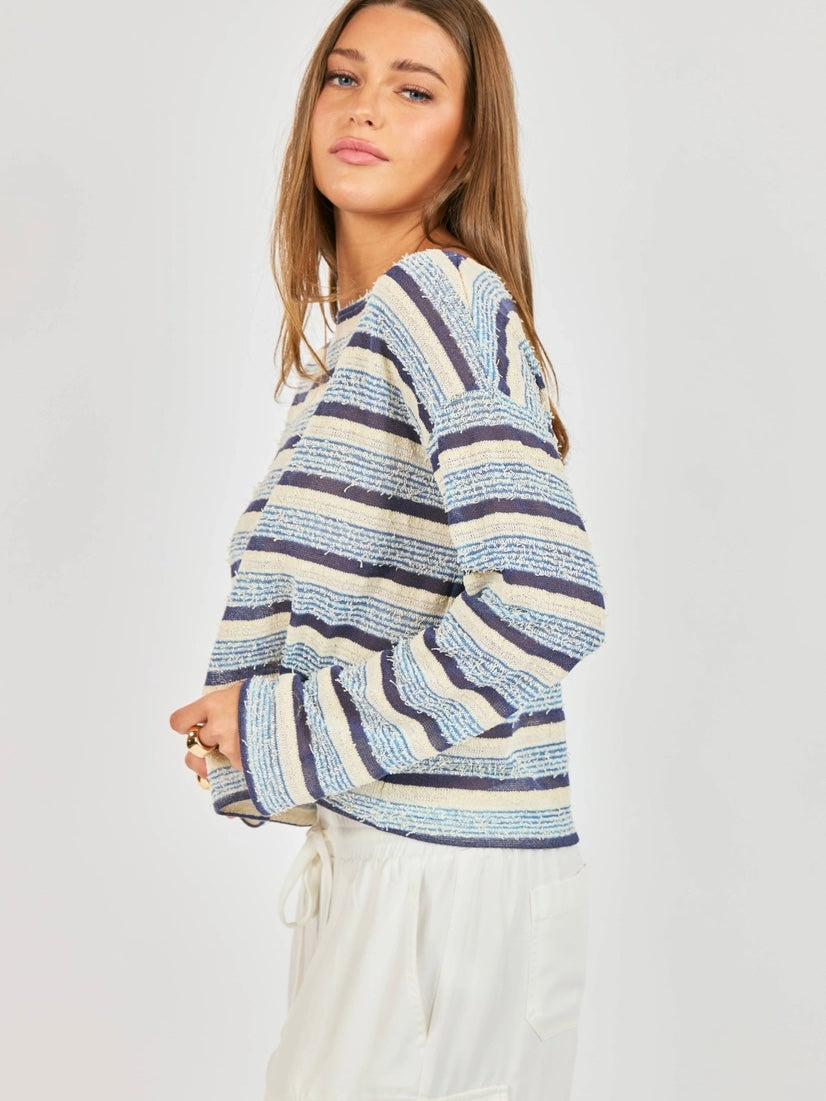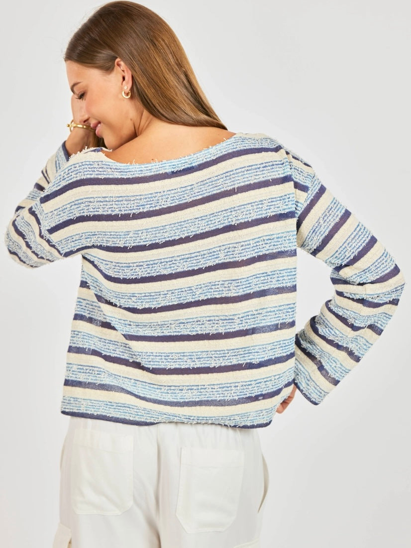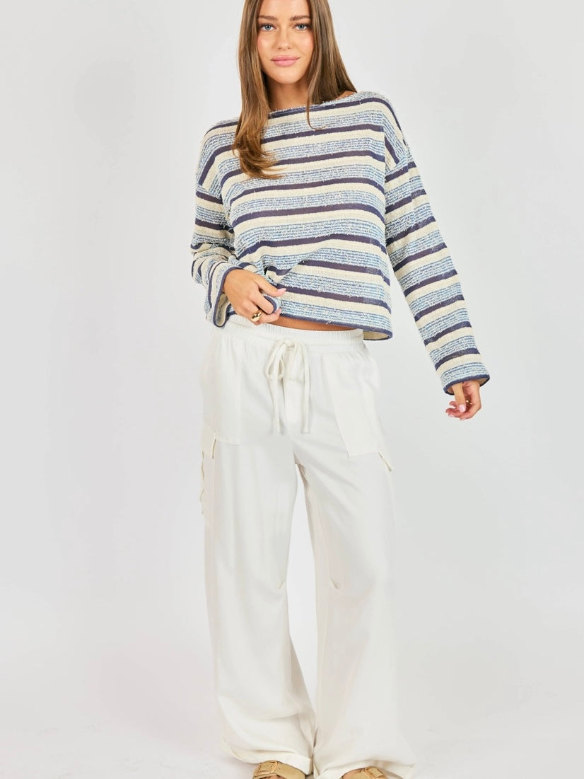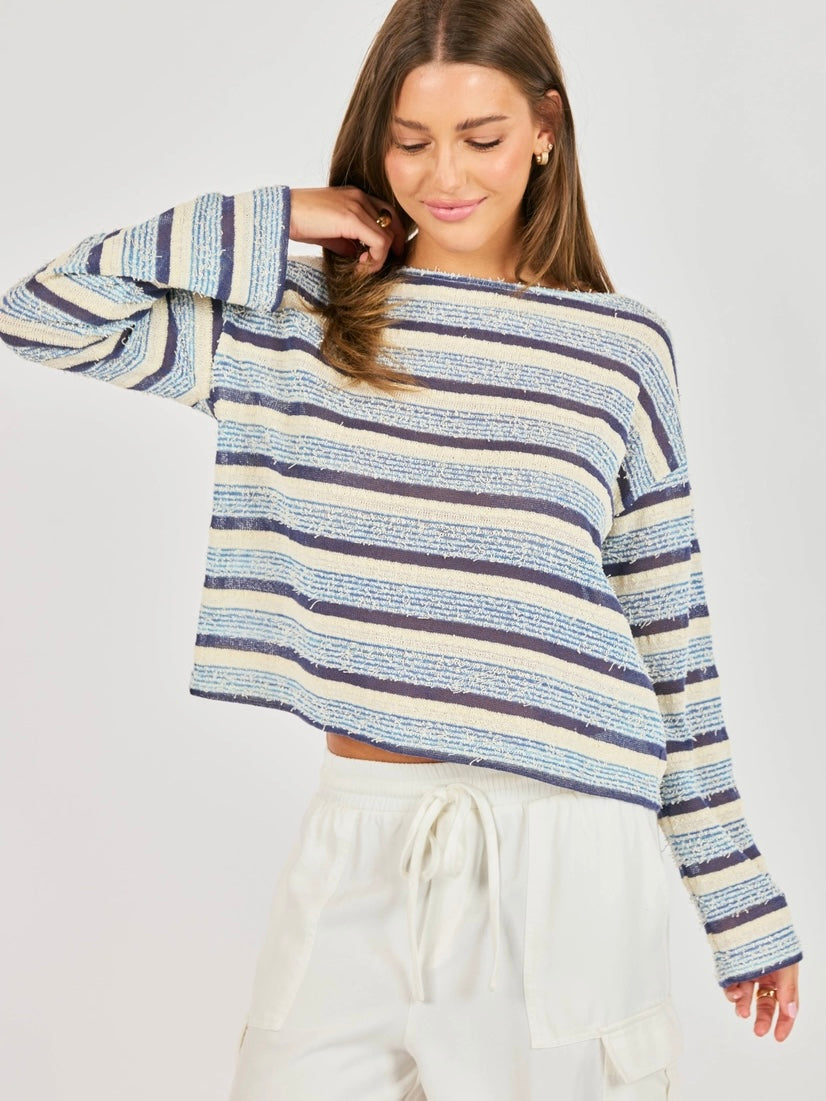Beach Stripe Sweater Elevate your casual wardrobe with this expertly crafted striped knit sweater. Featuring a timeless horizontal stripe pattern, this piece delivers versatile style that transitions seamlessly from weekend outings to relaxed office settings. The quality knit construction ensures durability and comfort, while the classic design pairs effortlessly with jeans, skirts, or tailored trousers. A wardrobe essential that combines understated sophistication with everyday wearability.