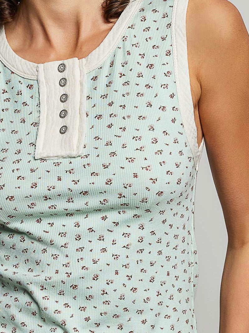 Mint Ditsy Floral Tank Top