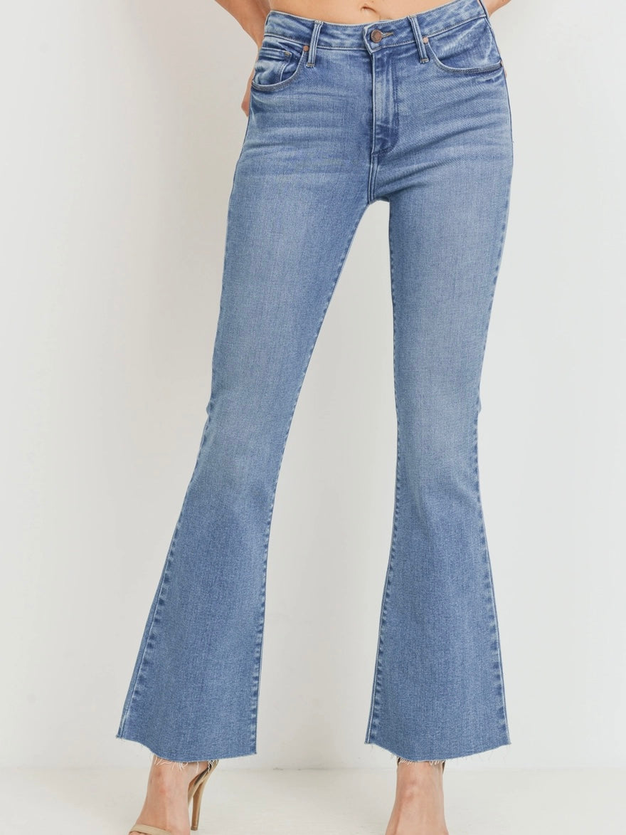 Fall head over heels for the High Rise Scissor Cut Flare — your new go-to jean! With a fresh wash and trendy scissor-cut hem, these jeans strike the perfect balance between classic and cool. Whether you’re dressing up for a night out or keeping it casual, they’ve got your look covered with a playful edge.