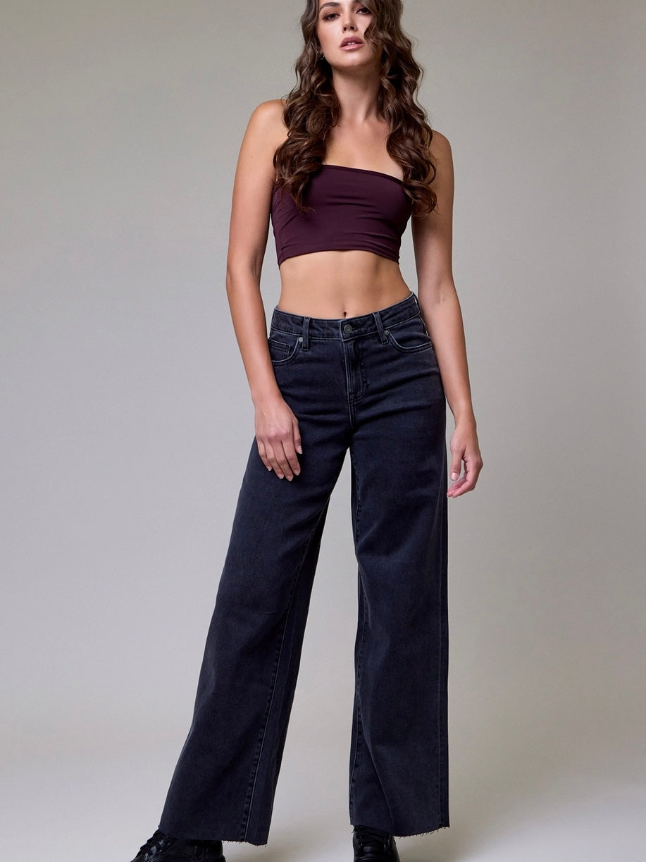 Charcoal Wash Clean Stretch High Rise Wide Leg Crafted from a premium blend of 65% cotton, 21% rayon, 11% polyester, and 3% spandex, these high-rise wide-leg jeans deliver both comfort and style. The 10" front rise sits perfectly at the waist, while the 32" inseam creates an elegant, elongated silhouette. The stretch fabric ensures all-day mobility without compromising structure, while the clean charcoal wash pairs effortlessly with any wardrobe. Designed for the modern woman seeking timeless denim that balances sophistication with wearability.