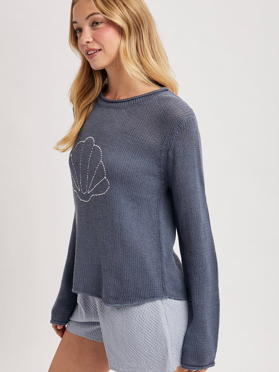 By The Seashore Embroidered Sweater in Navy combines timeless coastal aesthetics with everyday wearability. This long-sleeve round-neck piece features delicate seashell embroidery that brings understated sophistication to your wardrobe. Crafted from soft, breathable knit fabric, it delivers exceptional comfort for spring and summer layering or standalone wear. The relaxed, casual silhouette makes it an effortless choice for any occasion—from weekend outings to casual office settings. Perfect for those seeking quality basics with distinctive character.