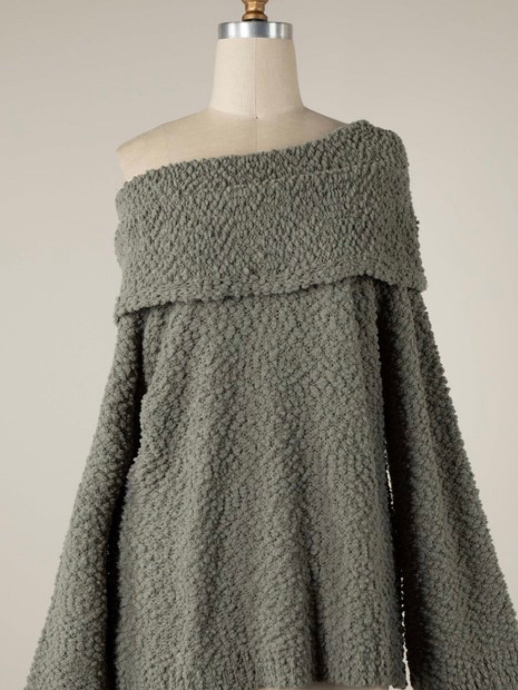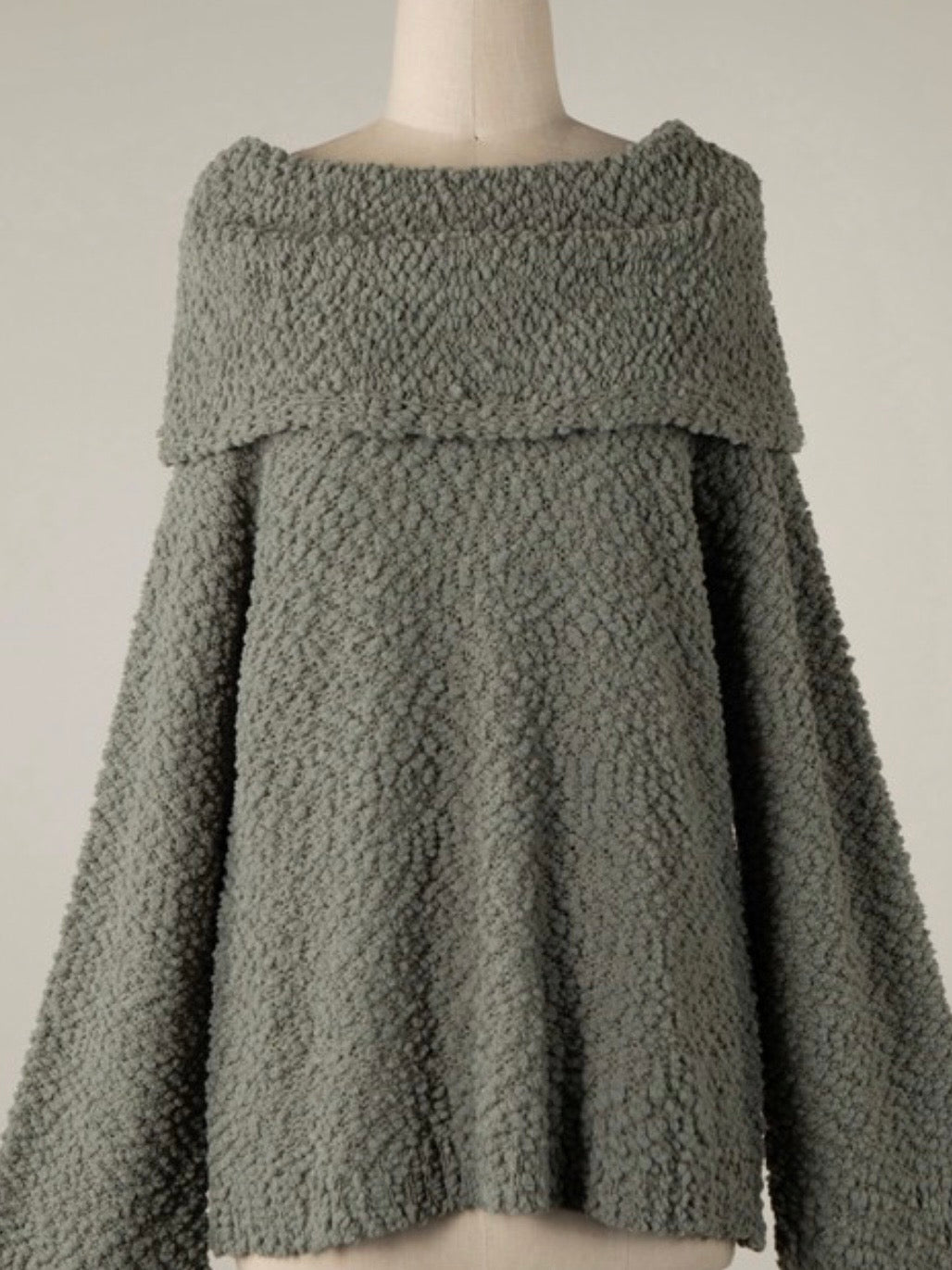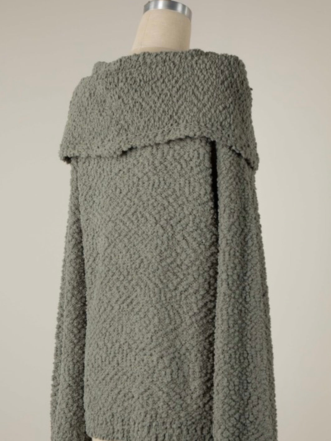 Elevate your layering game with this sophisticated cowl neck popcorn knit sweater. The textured popcorn knit fabric adds visual interest and dimension, while the graceful off-shoulder silhouette creates an effortlessly chic look. The generous cowl neckline drapes beautifully, offering both style and comfort. Perfect for transitional seasons, this piece pairs seamlessly with tailored trousers or your favorite denim for an instantly polished appearance.