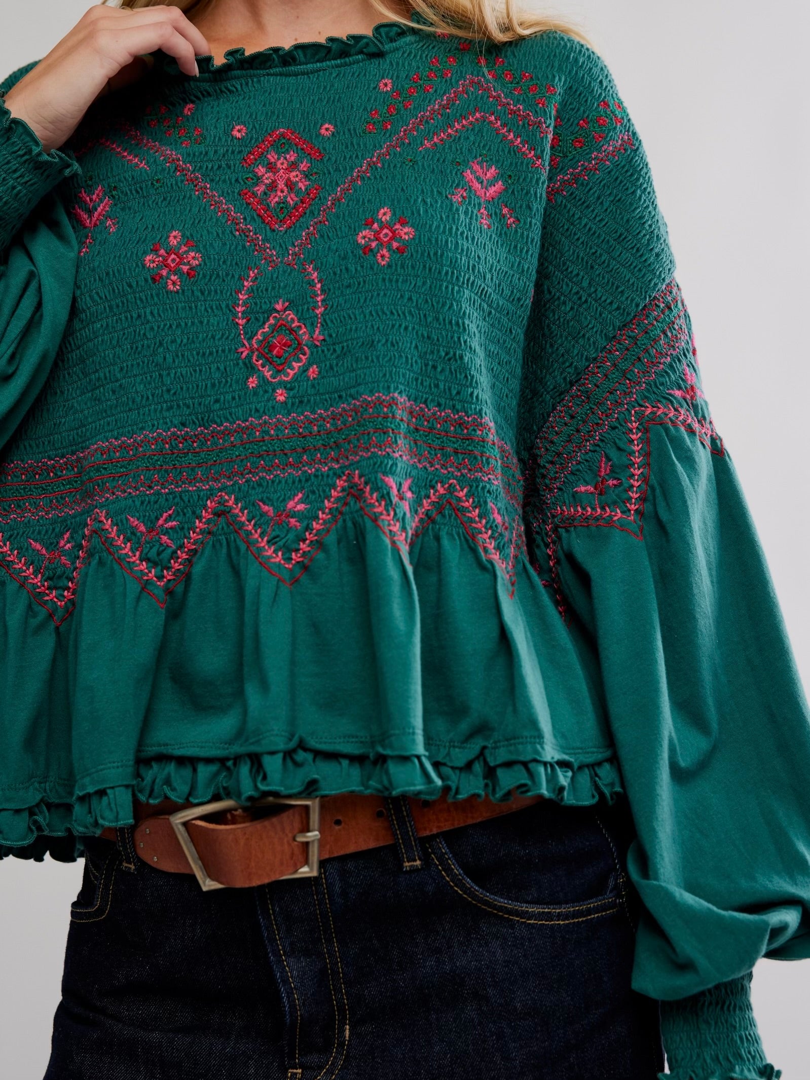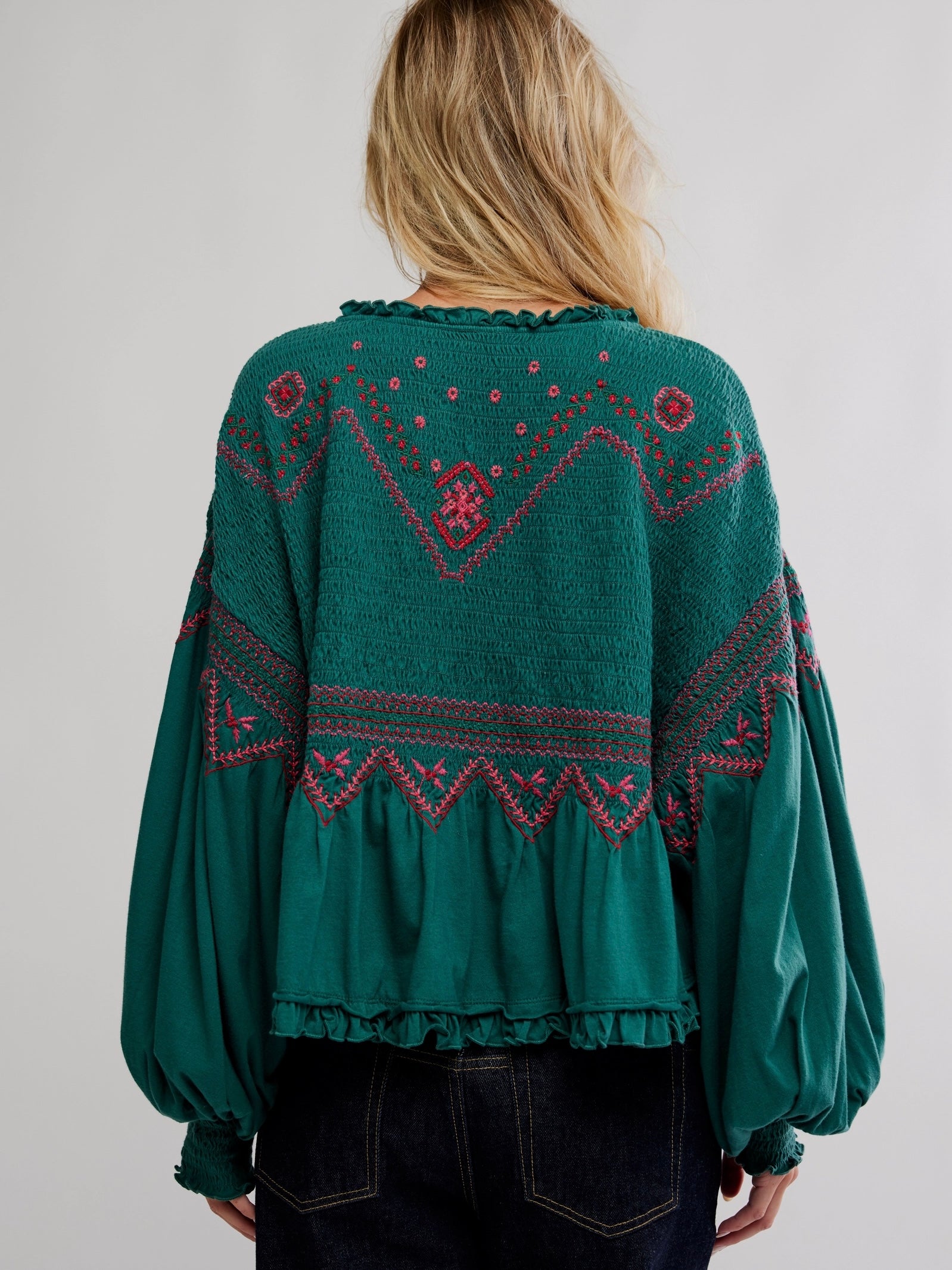Breezy, billowy, and beautiful, this long-sleeve top features lightweight cotton fabrication, a flowy peplum design, and exaggerated balloon sleeves for an effortless silhouette.
