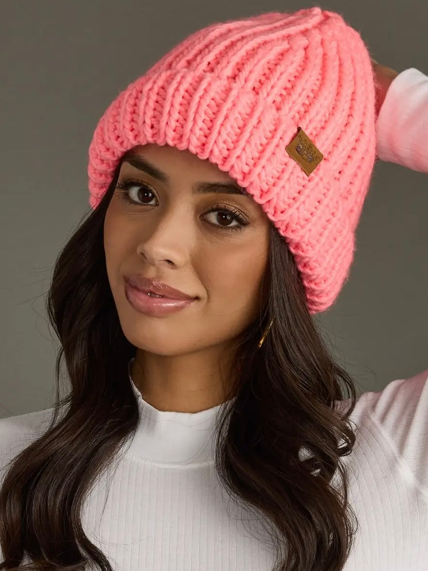 Stay warm in style with this vibrant coral chunky knit beanie, expertly crafted from 100% acrylic for durability and comfort. The oversized cuffed design adds contemporary flair, while the cozy fleece lining provides extra insulation against cold weather. Perfect for layering with your winter wardrobe, this statement piece combines functionality with eye-catching color that elevates any seasonal look.