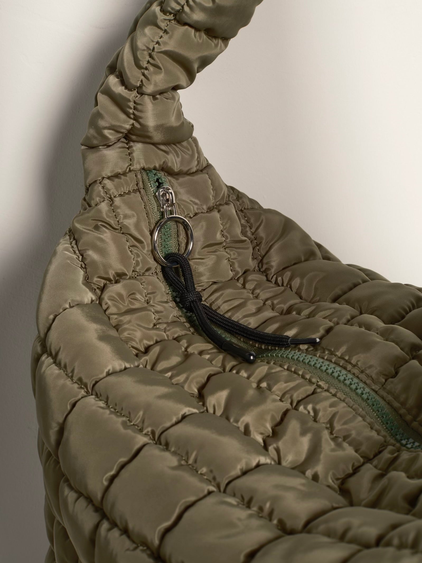Features: Unstructured style, Quilted fabrication, Fixed-length shoulder strap, Top zip closure with lace zip pull, Spacious interior compartment, Interior zip pocket, Exterior two-entry zip pocket, Buti logo detailing