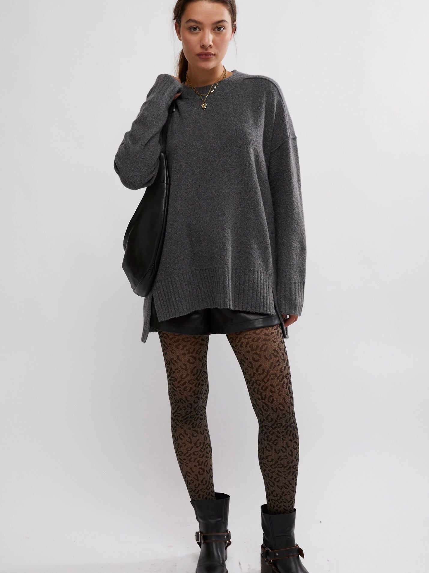 Bring out your wild side with the Animal Instinct Tight in Snow Leopard. These sheer black tights feature a bold snow leopard print that adds a playful edge to any outfit. Perfect for turning heads, they pair effortlessly with skirts or shorts while keeping your look fierce and fun.