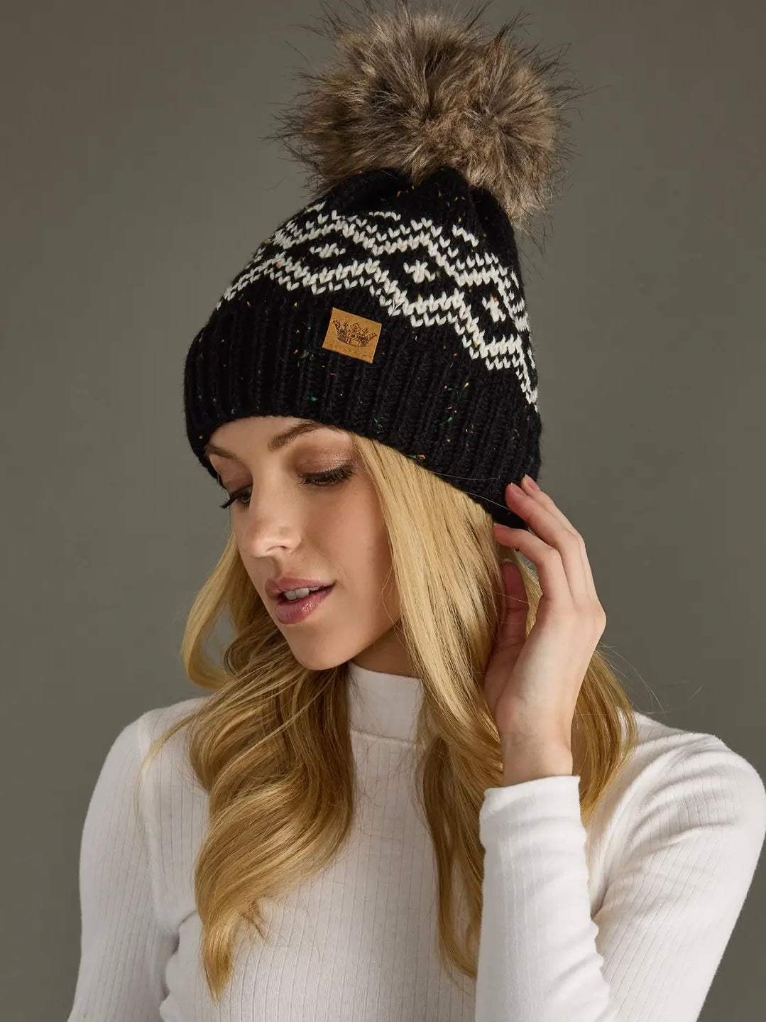 Stay warm and cozy with this speckled pom hat, featuring a plush faux fur pompom and soft fleece lining for extra comfort. The eye-catching speckled pattern adds visual interest to your winter wardrobe. Pairs perfectly with our mittens for a coordinated look.