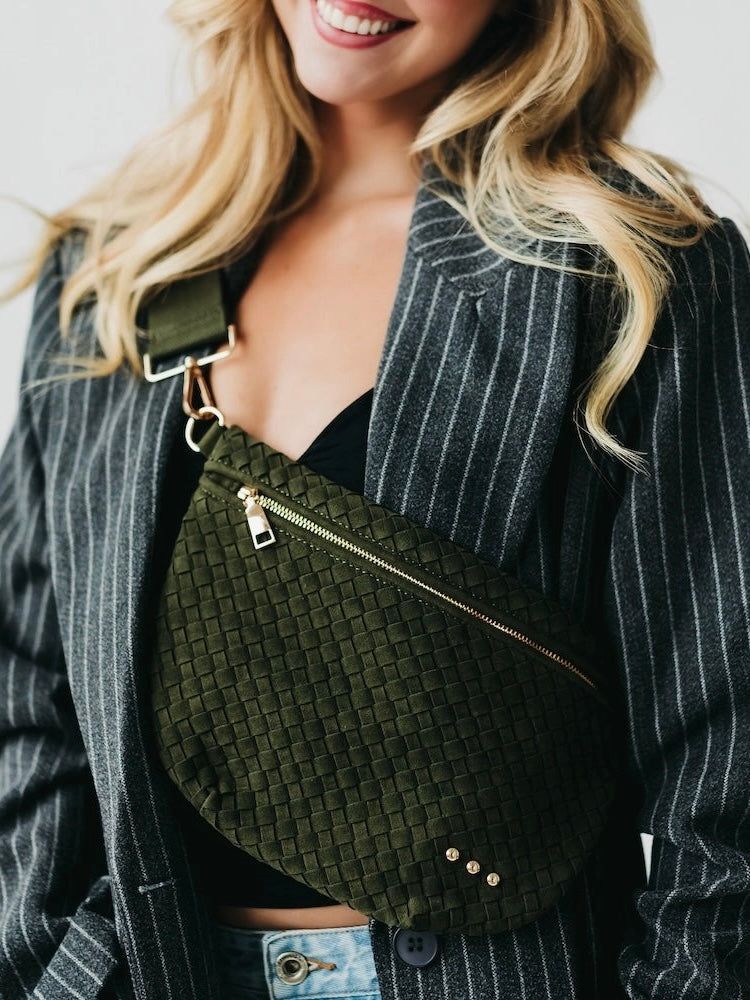 Say hello to the Suede Westlyn Woven Bum Bag — your new adventure buddy! This playful crossbody features a luxuriously soft suede feel paired with a striking woven pattern that turns heads wherever you go. Designed to keep your essentials within arm's reach, this hands-free wonder lets you move through your day with ease and style. Whether you're running errands or out exploring, the Suede Westlyn brings that perfect blend of function and fashion to every moment. Effortlessly fun, undeniably chic.