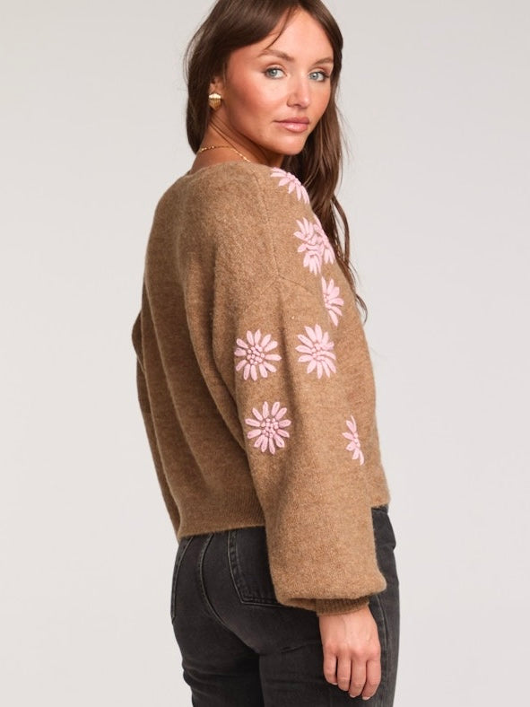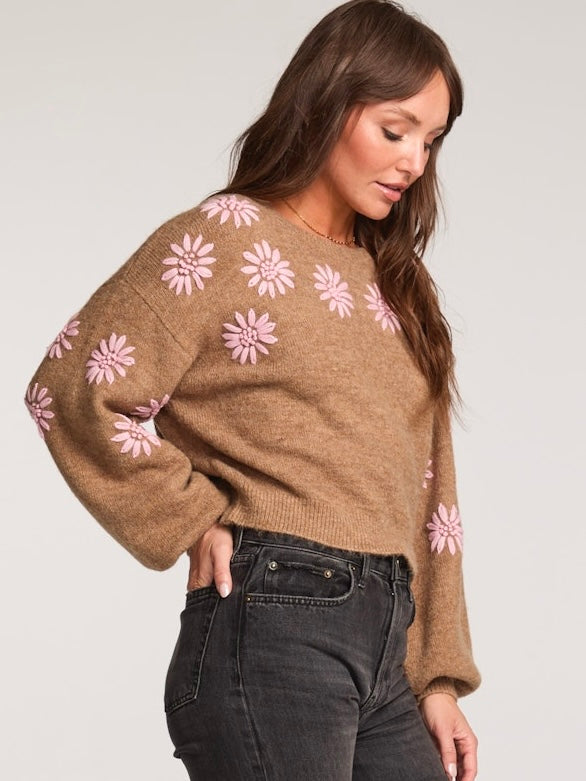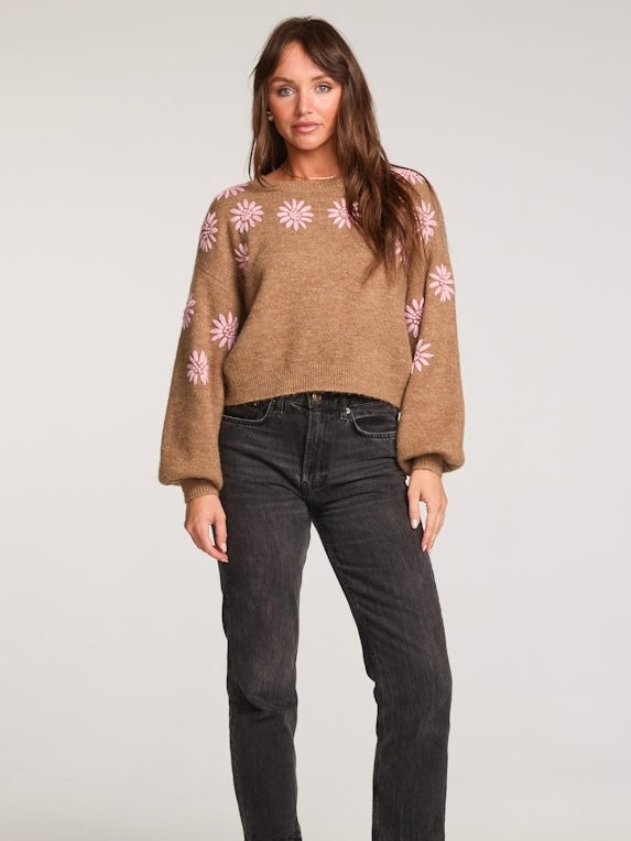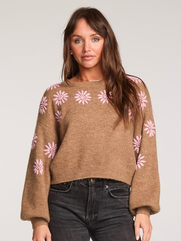 Embrace cozy fall vibes with this warm beige sweater adorned with delicate pink flowers. Its soft fabric keeps you comfortable while the charming floral design adds a cute, feminine touch to your autumn wardrobe. Perfect for layering on crisp days, this sweater blends style and comfort effortlessly.