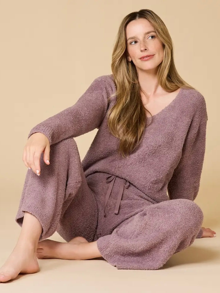Luxury lounging has arrived. The Solid Marshmallow V-Neck Lounge Set features a loose, straight-leg design paired with a classic v-neckline that flatters all figures. Its raw hem makes it down-to-earth in playful contrast to its deliberate and sophisticated design. Made from our customer-favorite Marshmallow fabric, this is a set you will want to live in.