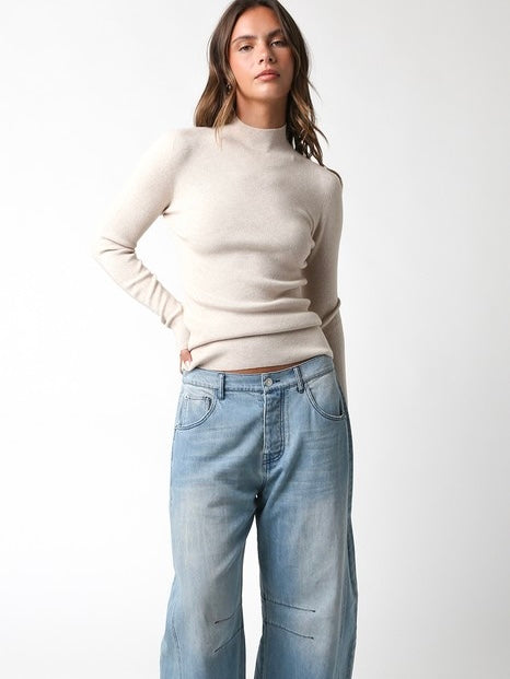 This Ribbed Mockneck Long Sleeve is a refined wardrobe foundation piece engineered for versatility. Its structured mock neck provides subtle definition while maintaining a streamlined silhouette, making it equally effective as a standalone layer or as a base beneath tailored outerwear. The long sleeves offer practical coverage and extend styling possibilities across seasons. Oatmeal's neutral sophistication ensures seamless integration with both casual and professional wardrobes, delivering the kind of understated elegance that discerning dressers rely on. A timeless investment in quality basics.