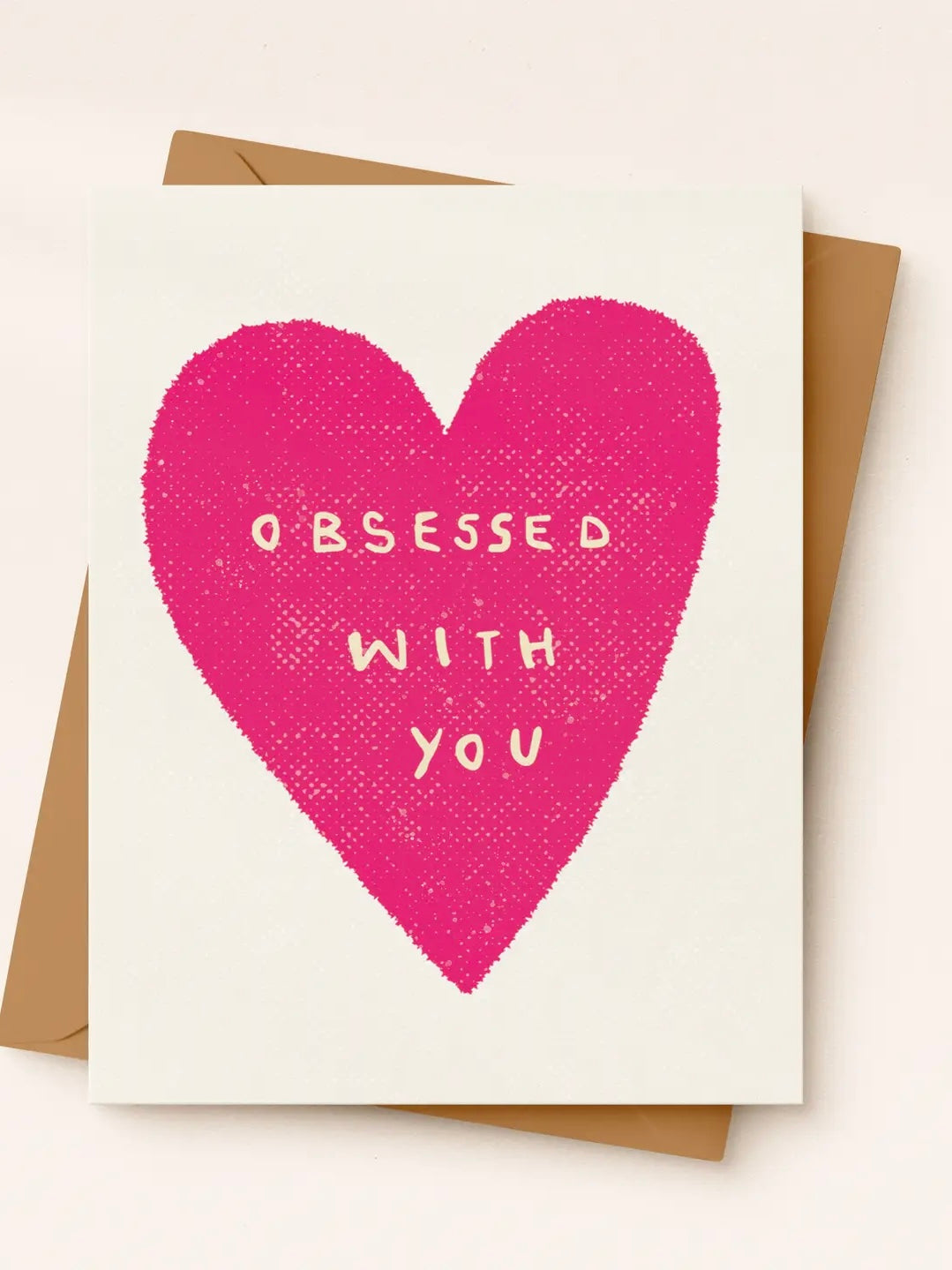 A bold and heartfelt Valentine’s Day card that says it all. Featuring a vibrant pink heart and hand-lettered text reading “Obsessed With You,” this card captures the perfectly playful, modern way to say I’m totally in love with you. Designed with a clean, minimalist aesthetic that feels retro yet fresh, it’s the ideal card for Valentine’s Day, anniversaries, or anytime you want to remind someone how much they’re adored. Whether you’re celebrating your partner, crush, or best friend, this card brings all the warm, fuzzy feelings—with a little wink of cheeky charm. Perfect for those who love simple design, bold color, and meaningful messages that stand out. ✔ A2 size (4.25" x 5.5") ✔ Blank inside for your personal message ✔ Digitally printed on premium textured stock ✔ Paired with a 100% recycled kraft envelope ✔ Packaged in a plastic-free, biodegradable clear sleeve ✔ Designed & printed in Portland, Oregon, USA ✨