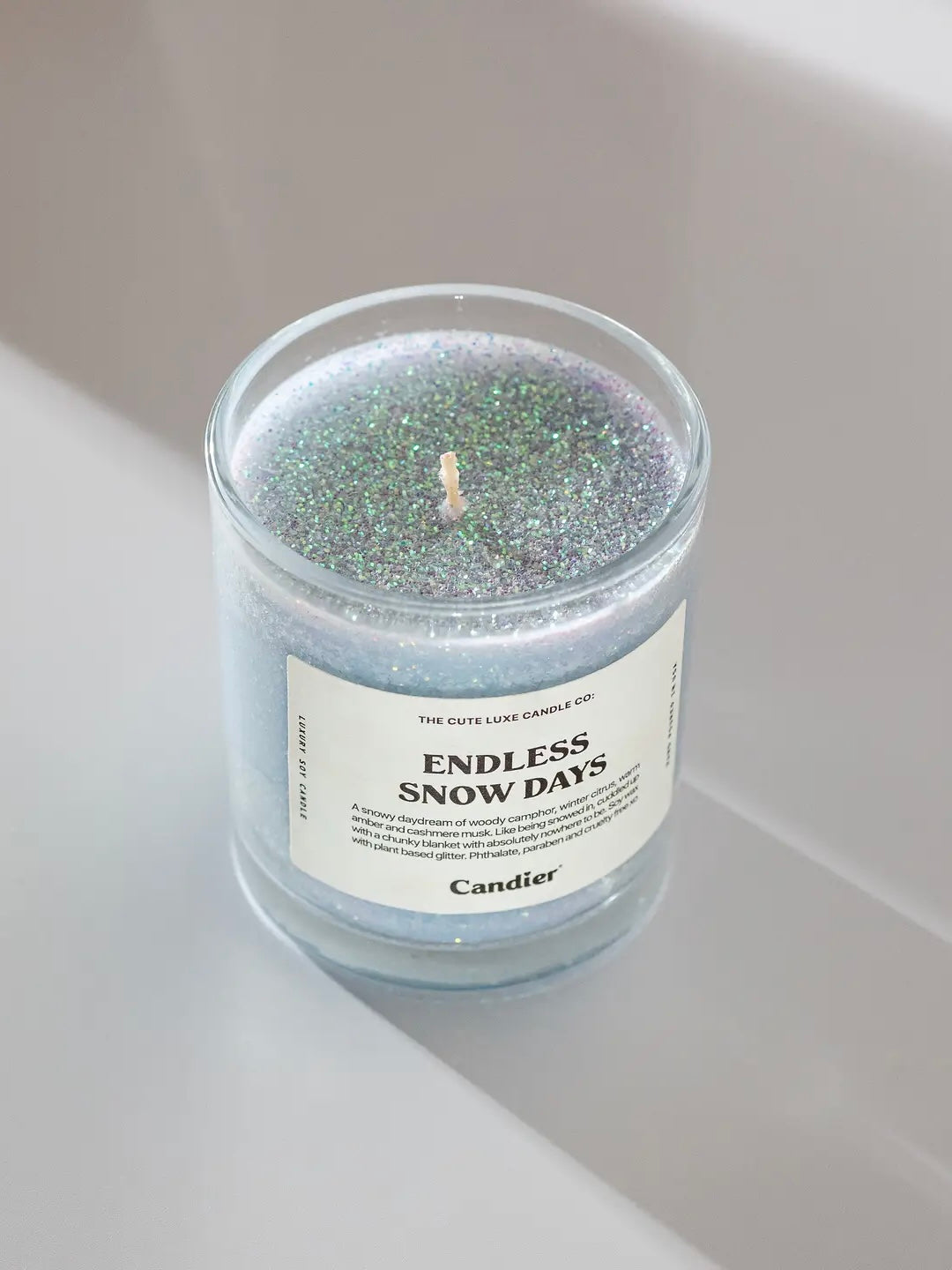A snowy daydream of woody camphor, winter citrus, warm amber and cashmere musk. Like being snowed in, cuddled up with a chunky blanket with absolutely nowhere to be. Soy wax with plant based glitter.