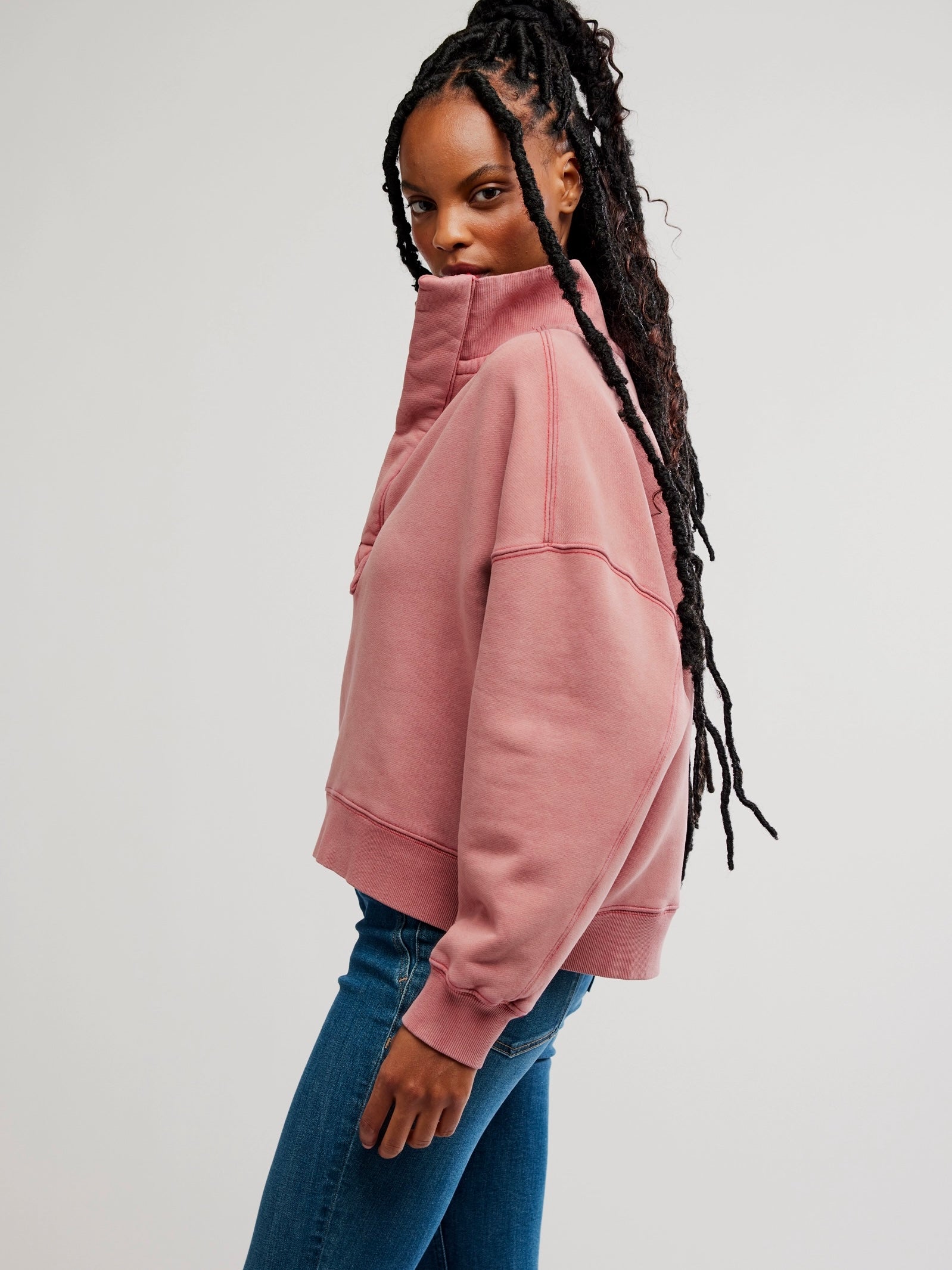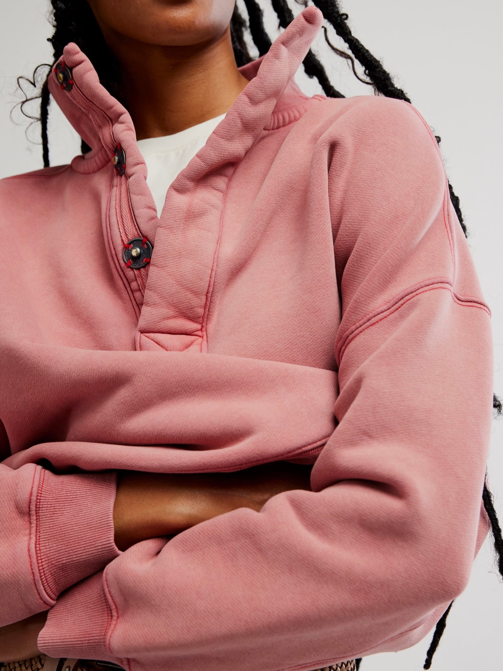 So cozy and essential, this wear-everywhere pullover features a funnel neck design with quarter-button detail and ribbed trimming for added dimension.