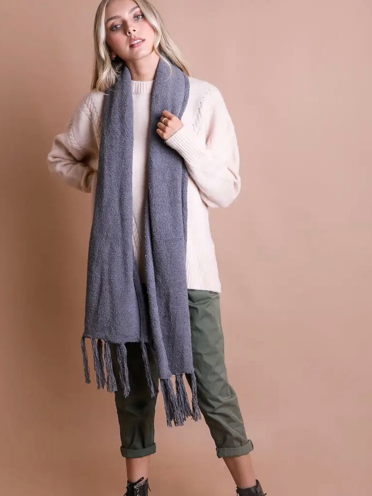 Wrap yourself in cozy comfort with this Ultra-Soft Boucle Tassel Scarf, perfect for chilly days. This stylish scarf features trendy tassels and is made from luxurious, soft fabric that feels amazing against the skin. Ideal for layering, it adds a touch of elegance to any outfit.